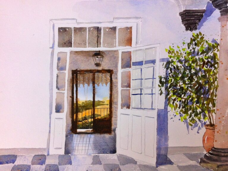 No es raro ver como algunos de nuestros huéspedes dibujan o pintan en acuarela desde nuestra terraza o desde el patio. Anne Christophe, acuarelista francesa, de Besançon, nos visitó este verano y ahora nos ha mandado algunas de las estampas…