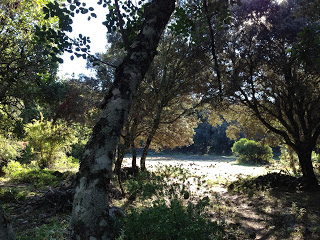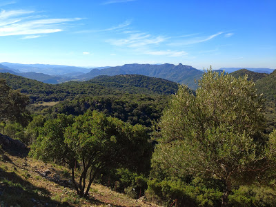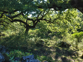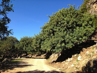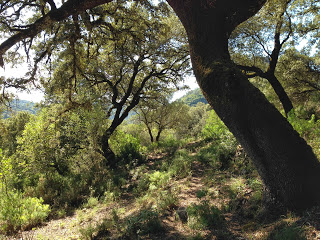 Esta mañana he dado un paseo otoñal en círculo por la sierra, cerca de Arcos. Iba con una persona muy querida en un día muy especial para ella. Encinas, quejigos, robles, algarrobos ( en flor), madroños, acebuches( olivos silvestres), chopos, mosquetas y majuelos esbozaban casi todos los colores del verde. Un intenso aroma a miel perfumaba el monte y el canto intermitente de los pájaros resonaba cercano y se perdía entre los arboles. ¡Sigue este veranillo del membrillo que parece no querer terminar! Hay días en los que los frutos desbordan el regazo.