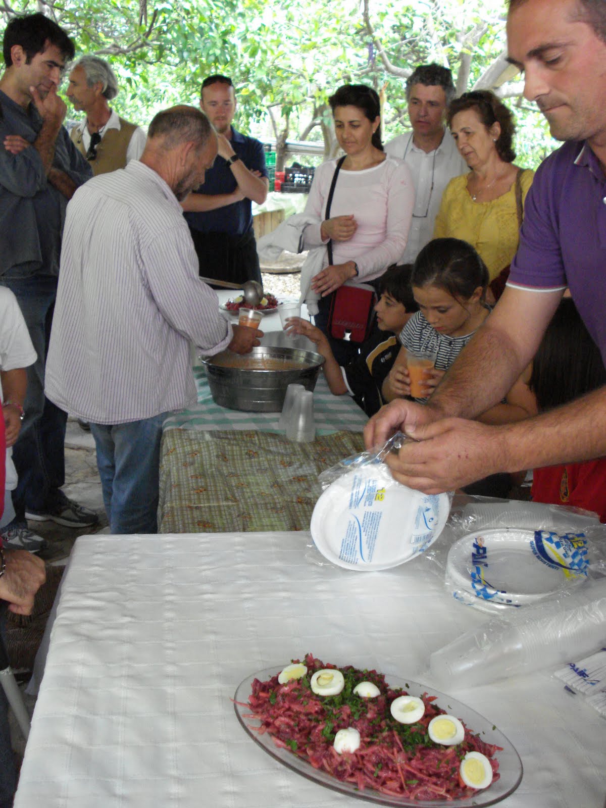 La visita a la finca se cerró con una deliciosa degustación de aperitivos hechos con sus verduras y huevos y regado con vinos de Prado del Rey. Y desde aquí un brindis por la familia Mulero- también por los hijos Antonio y Laura- y por ese saber agacharse ante la tierra con entrega, sudor y orgullo.