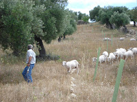 «Gorri, Gorri, Gorri» grita Antonio y, por el olivar, empieza a derramarse el rebaño de ovejas que acuden a su llamada. Las ovejas «trabajan» segando los campos en barbecho y, de paso, abonando con su estiércol las parcelas para la próxima cosecha.
