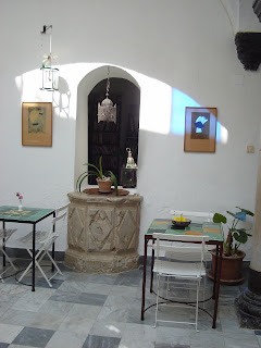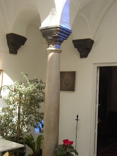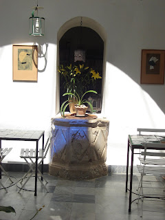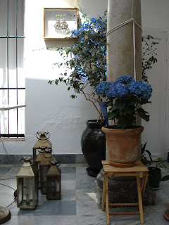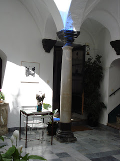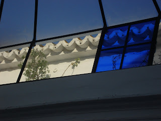 La montera ( o cúpula de cristal) es como un enorme reloj de sol que traza el paso del tiempo en nuestro patio. Gracias a los pequeños cristales azules, podemos seguir el ritmo de la primavera, el verano y el otoño, cuando la elevación del sol le permite asomarse al patio y saludarnos en azul.