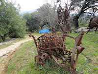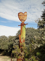 | algunas esculturas hechas por su ex pareja se encuentran en la finca. Esta, captada al entrar y al salir, está en la cancela |