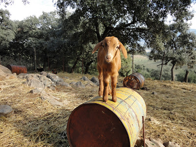 Sabía ya de algunas de las cosas excelentes que produce Daniela por ahora degustado alguno de sus cabritos- que se pueden comprar en Prado del Rey- y porque el queso La Cabra Verde, que elabora una mujer austríaca, Angélica, en una finca de Arcos, se produce con la leche de sus cabras. El queso de La Cabra Verde ha sido merecedor de diversos premios y lo servimos con tomate- también ecológico- o con anchoas hechas en casa como tapa en La Casa Grande. Verla ahora en su habitat, llena de vitalidad, junto a su casa magnífica y rodeada de sus animales queridos ha sido una experiencia aún más reconfortante.