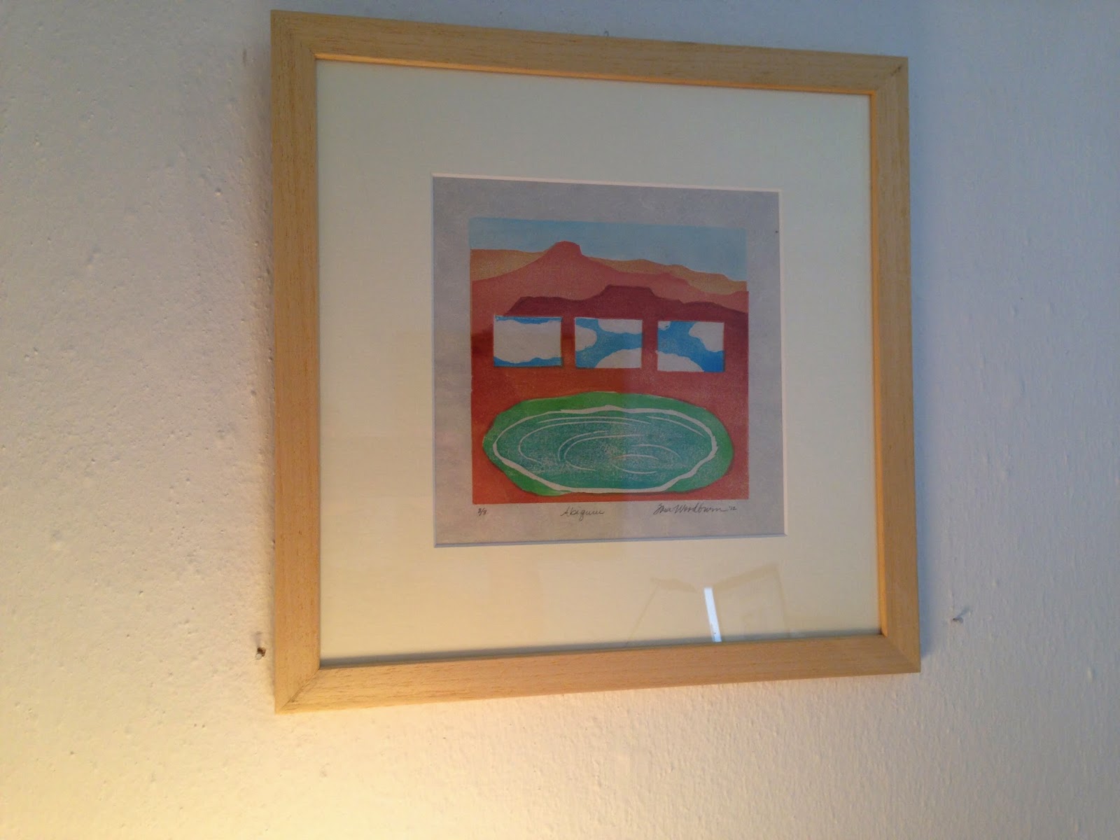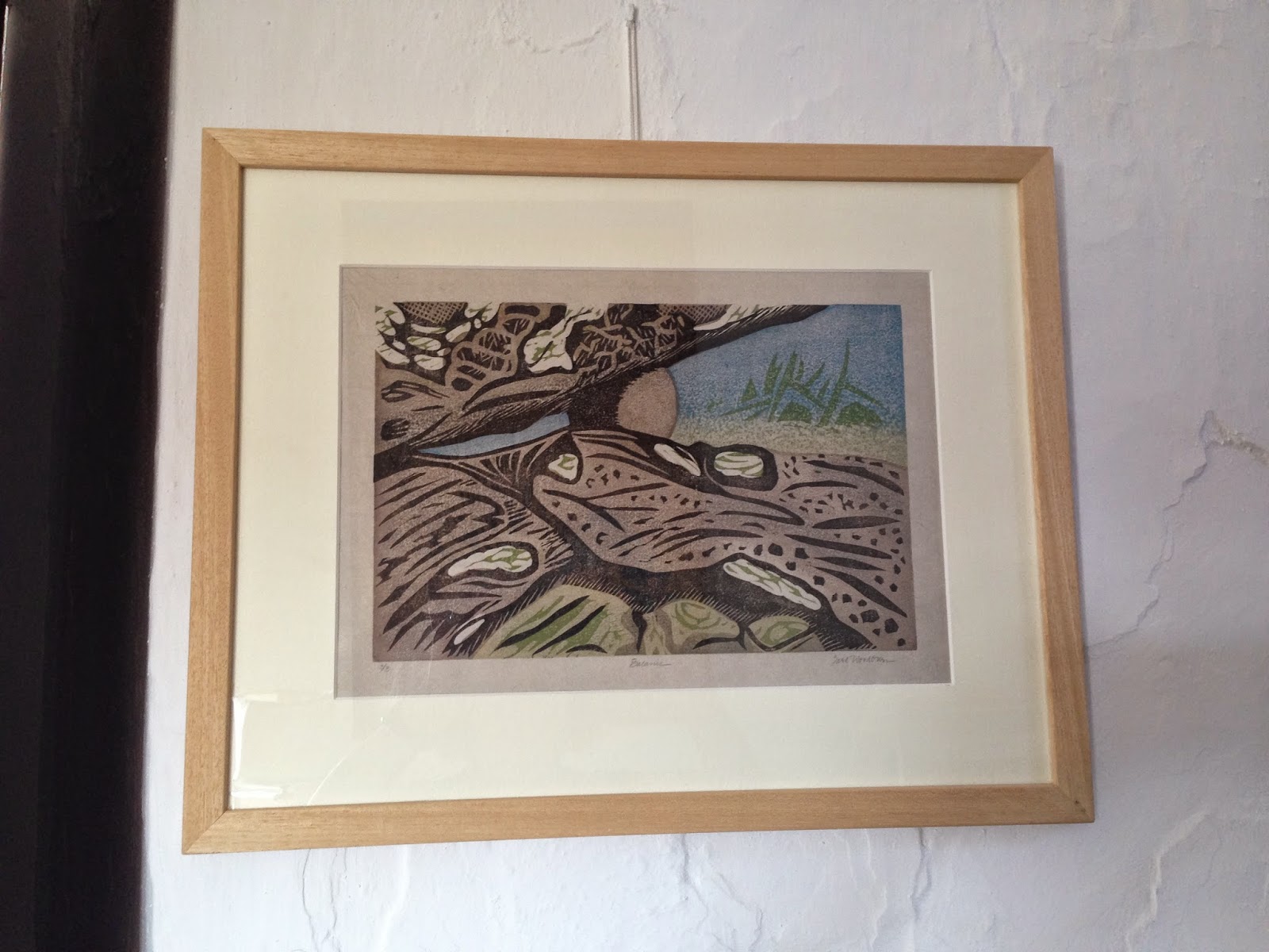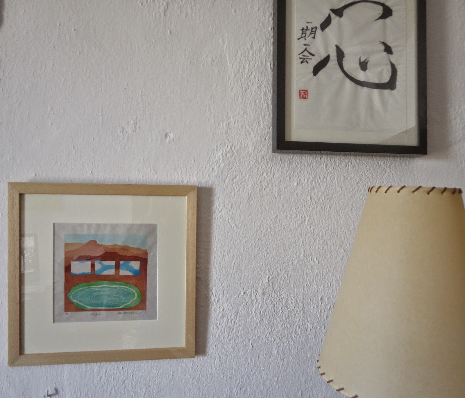 Moku hanga es una forma tradicional japonesa de grabado en madera. Sara Woodburn se alojó en La Casa Grande con su marido y resulto ser una artista que trabaja con esta técnica. Me interesé por su obra y tras meses de árduo traginar aduanero los grabados llegaron a La Casa Grande. Finalmente parece que ya han encontrado su sitio entre estos muros. Ha habido un corrimiento de cuadros para darles la bienvenida, pero esto será objeto de otra entrada.