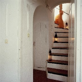 mientras vamos subiendo la escalera descubrimos, al fondo de la galería, el cuadro Chateau de Salses de Ramón Herreros