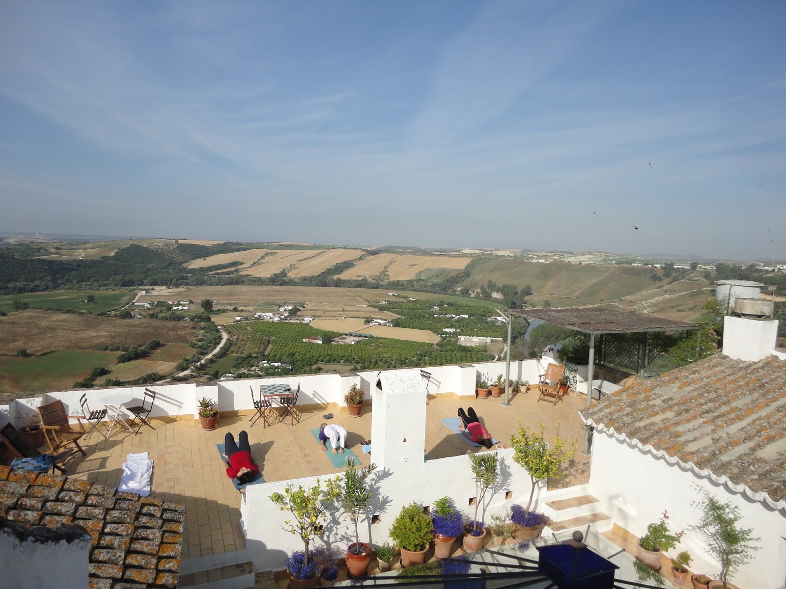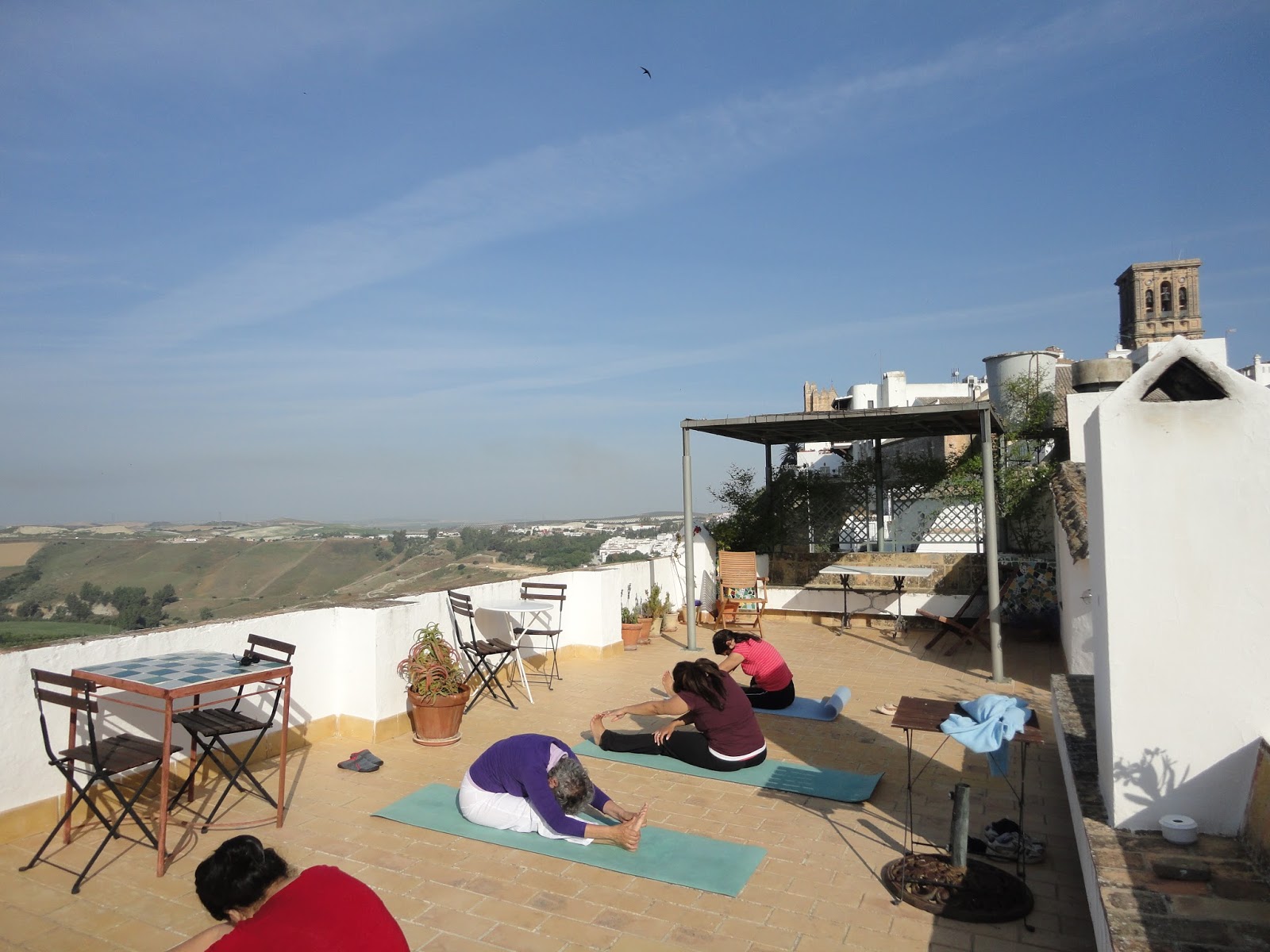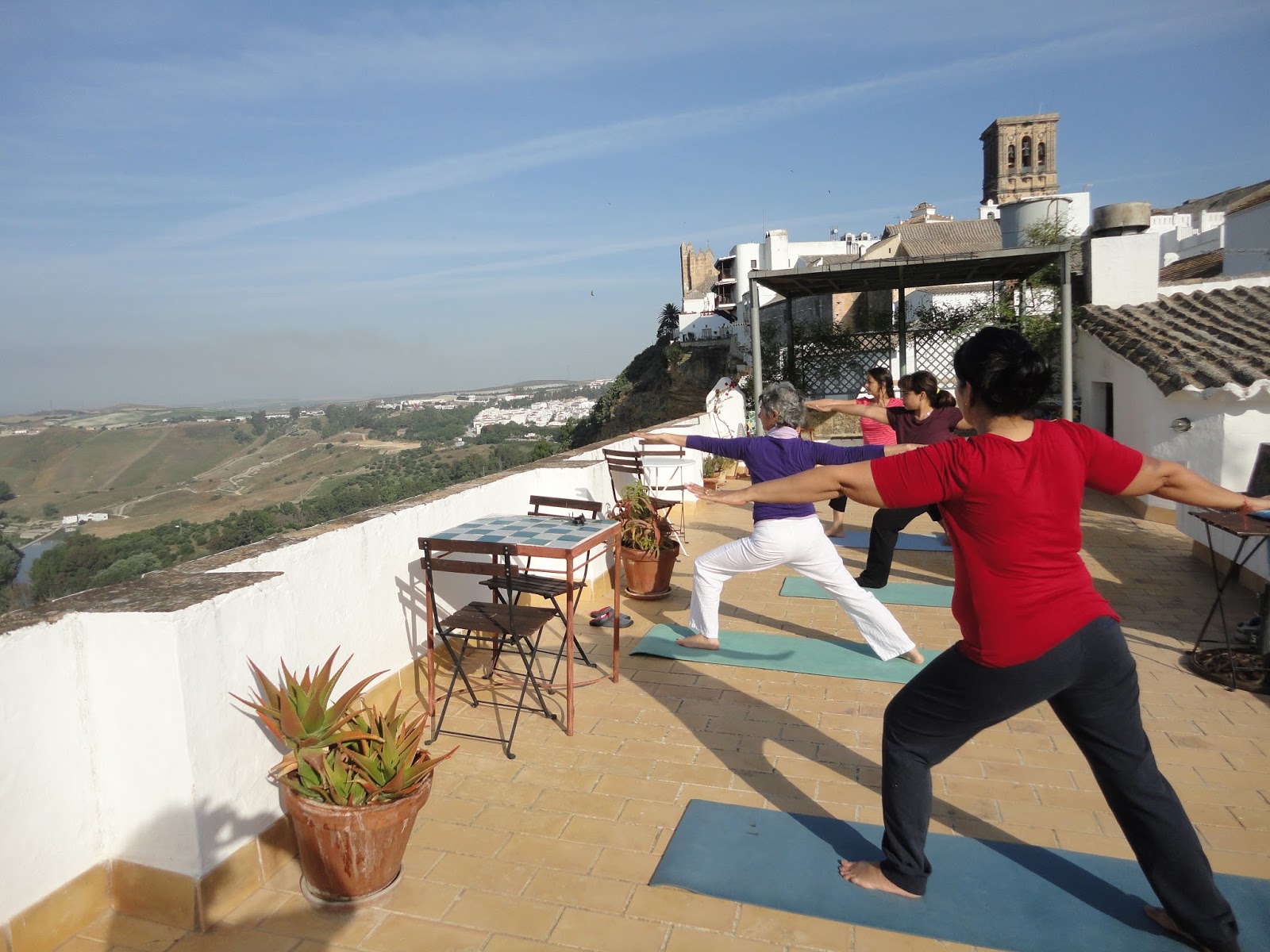 Son poco mas de las nueve de la mañana y acaba de empezar la clase de yoga. El sol acompaña suavemente los movimientos, algunos pájaros chillan alborozados mientras se precipitan por el cortado de la peña. Es una delicia acompasar respiración y movimientos con el disfrute del panorama y del cielo. A Grace Duarte, la profesora, le encantan estas clases matinales en la terraza. Al igual que las tres damas hindúes que viven en Canada, Preet Gill, su madre y su tía, que habían reservado la clase y que saborearon la experiencia. Esta es una de las actividades que se pueden realizar en La Casa Grande.