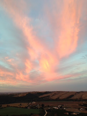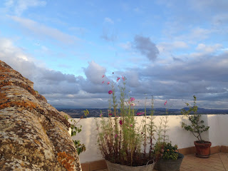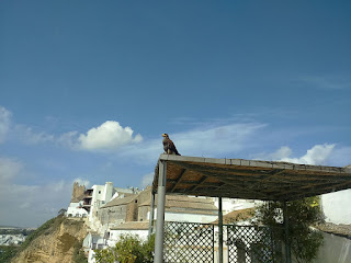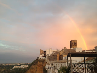 Los cielos de otoño en Arcos suelen ser una pequeña maravilla: luces transparentes y cambiantes que se agitan en un lienzo que se enciende, se incendia y se ensombrece. Un revuelo que no cesa. Este año hemos tenido algunos momentos especiales. El arco iris se asomó a saludarnos. Otra visita ha sido la del aguilucho que se posó un rato en nuestra pérgola para darnos los buenos días. El espectáculo sigue.