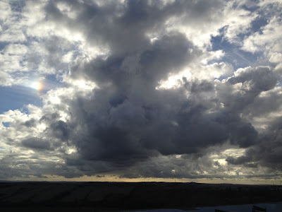 a la izquierda  de los nubarrones se aprecia un pequeño destello de arco iris