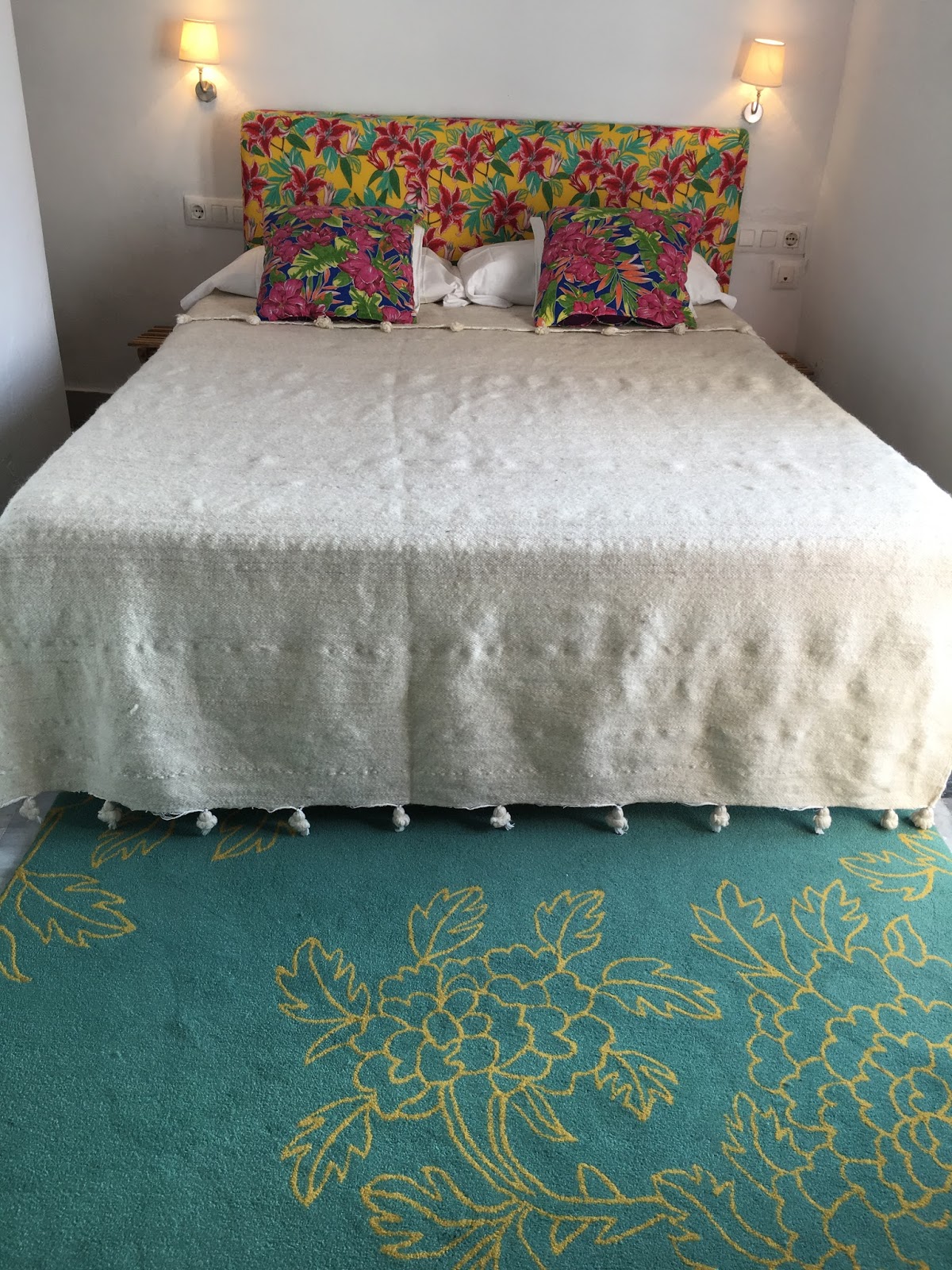 En algunos casos, como el de la suite, la que fue la primera habitación del hotel, las alfombras habían cumplido ya 17 años. Todavía aguantaban el tipo pero tocaba renovar. Una vez más nos pusimos en manos de Naqsh, la fábrica de alfombras de Arcos, para la renovación para que realizaran las alfombras de lana hechas a mano que han labrado el prestigio de la empresa. Con Keka Velázquez elegimos los colores apropiados para cada habitación a partir de los diseños de Naqsh. Estos son los resultados: un regalo para nuestros huéspedes del que nos sentimos felices.